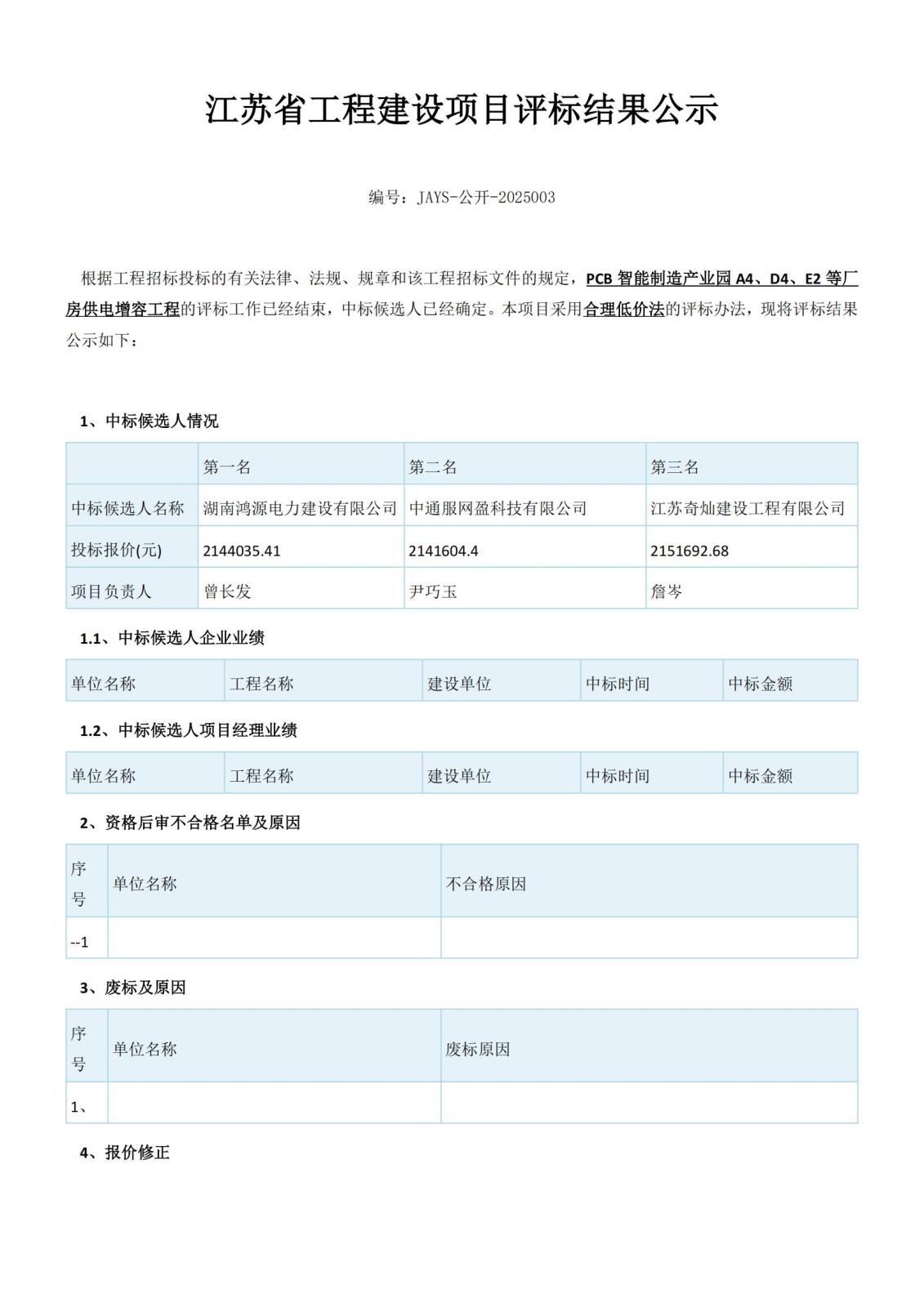 江蘇省工程建設項目評標結果公示